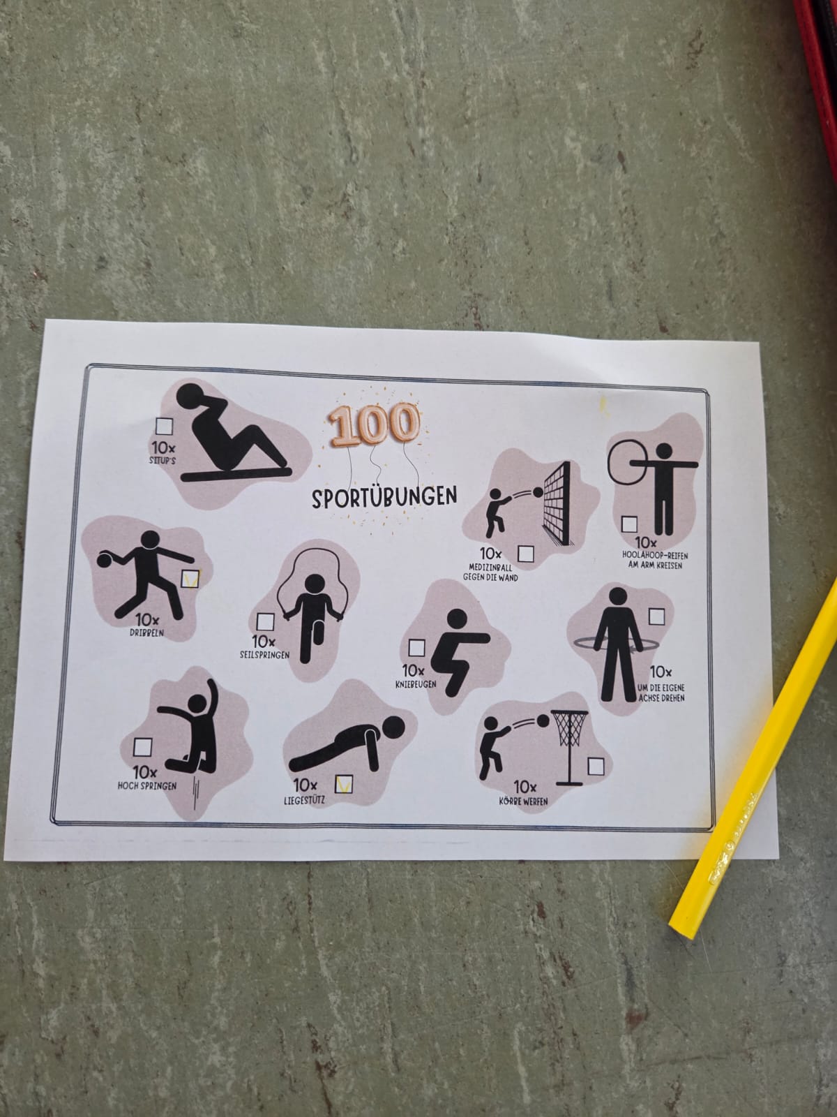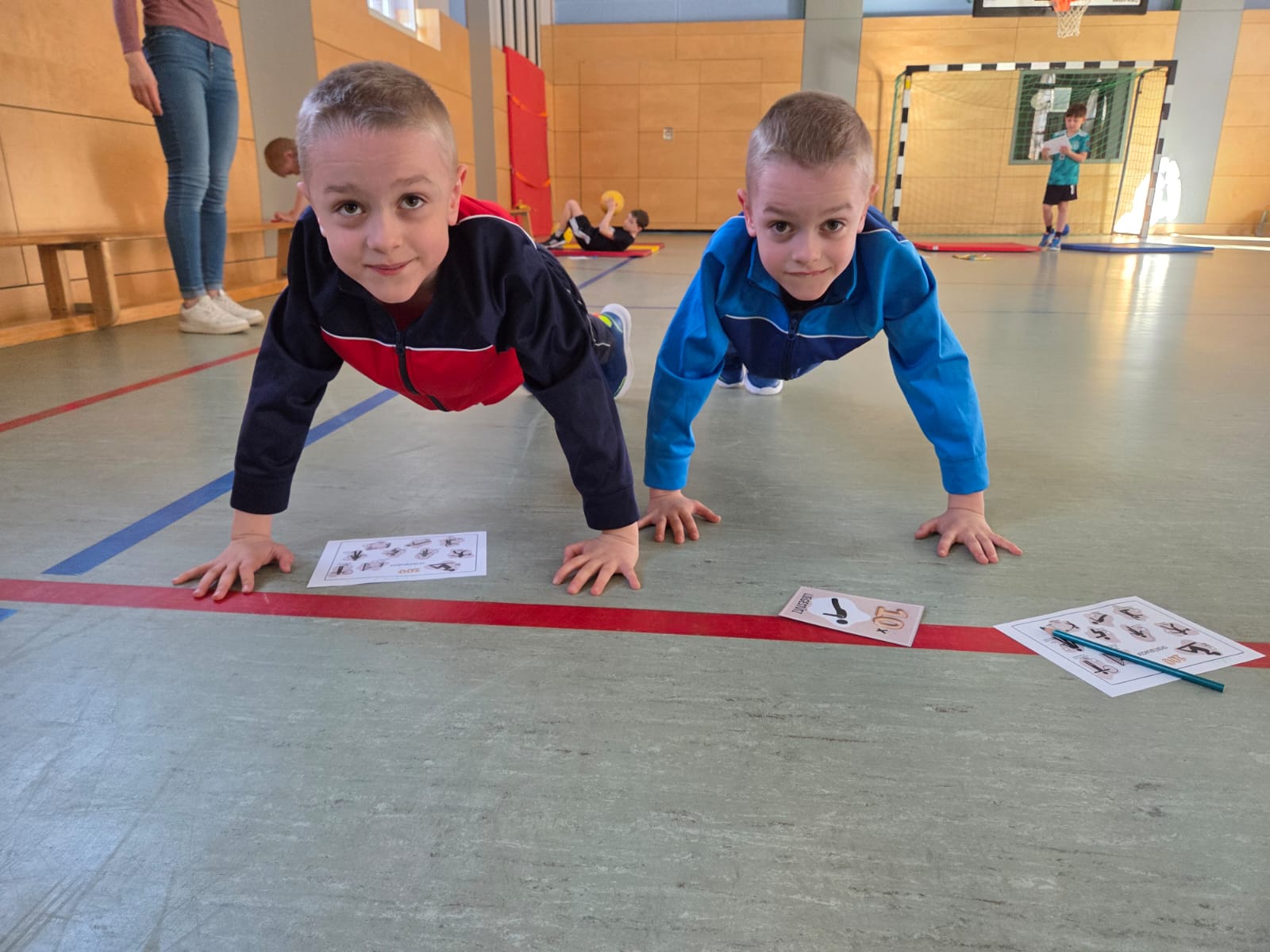 Natürlich durfte auch Bewegung nicht fehlen: In der Turnhalle stellten die Kinder ihre Ausdauer unter Beweis und absolvierten 100 Kraftübungen.