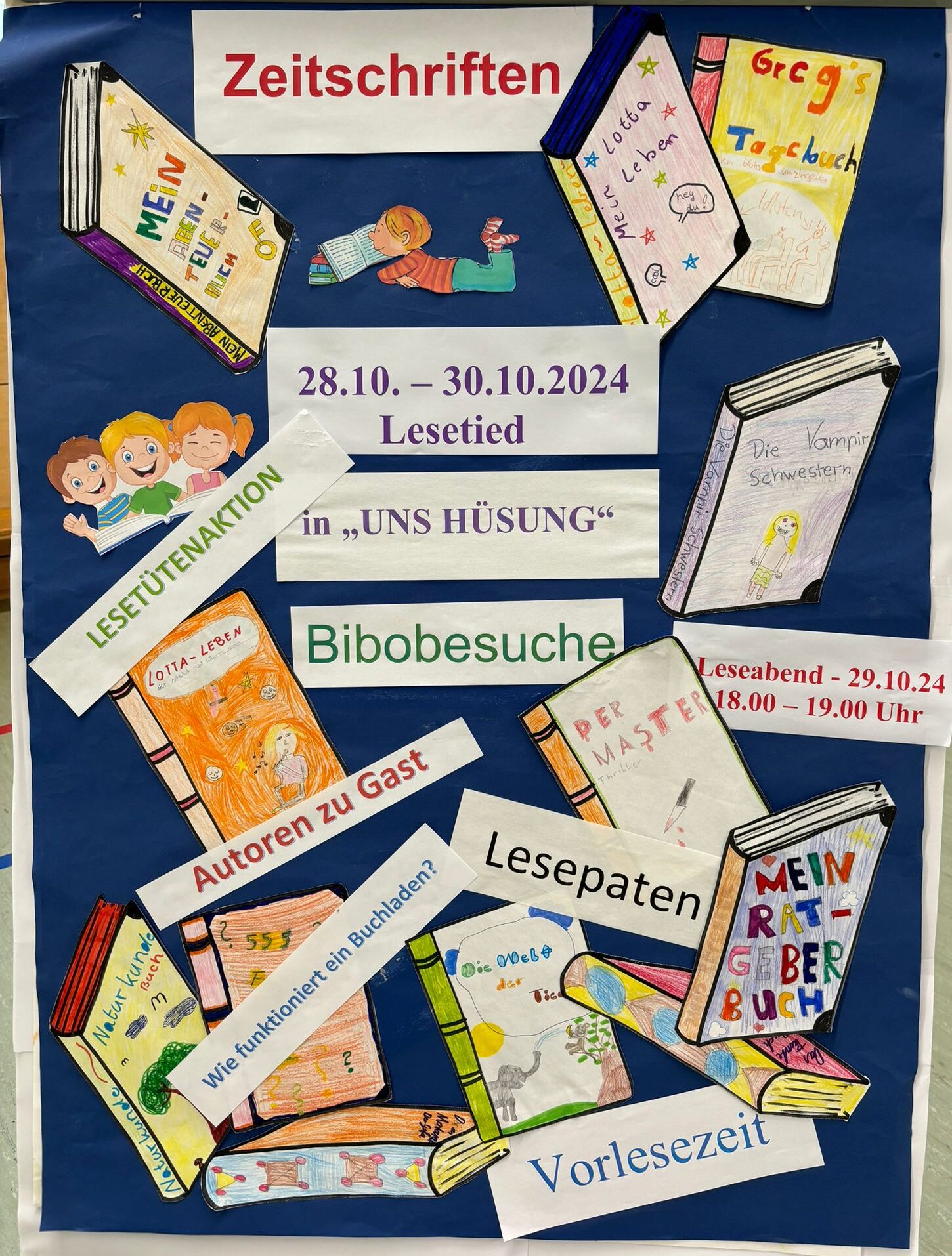 „Lesetied“ hieß es wieder Ende Oktober in „Uns Hüsung“. Viele interessante Aktionen erwarteten uns: Bibliotheksbesuche, Autoren zu Gast, Lesepatenschaften, Vorlesezeit, Lesetütenaktion, Leseabend und vieles mehr. Danke an alle Organisatoren, Unterstützer und Helfer!