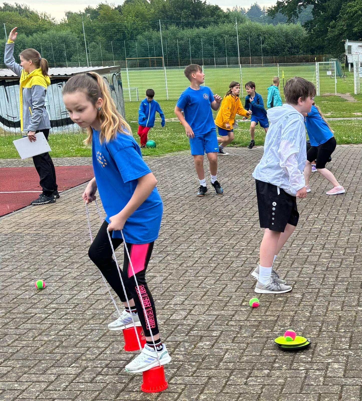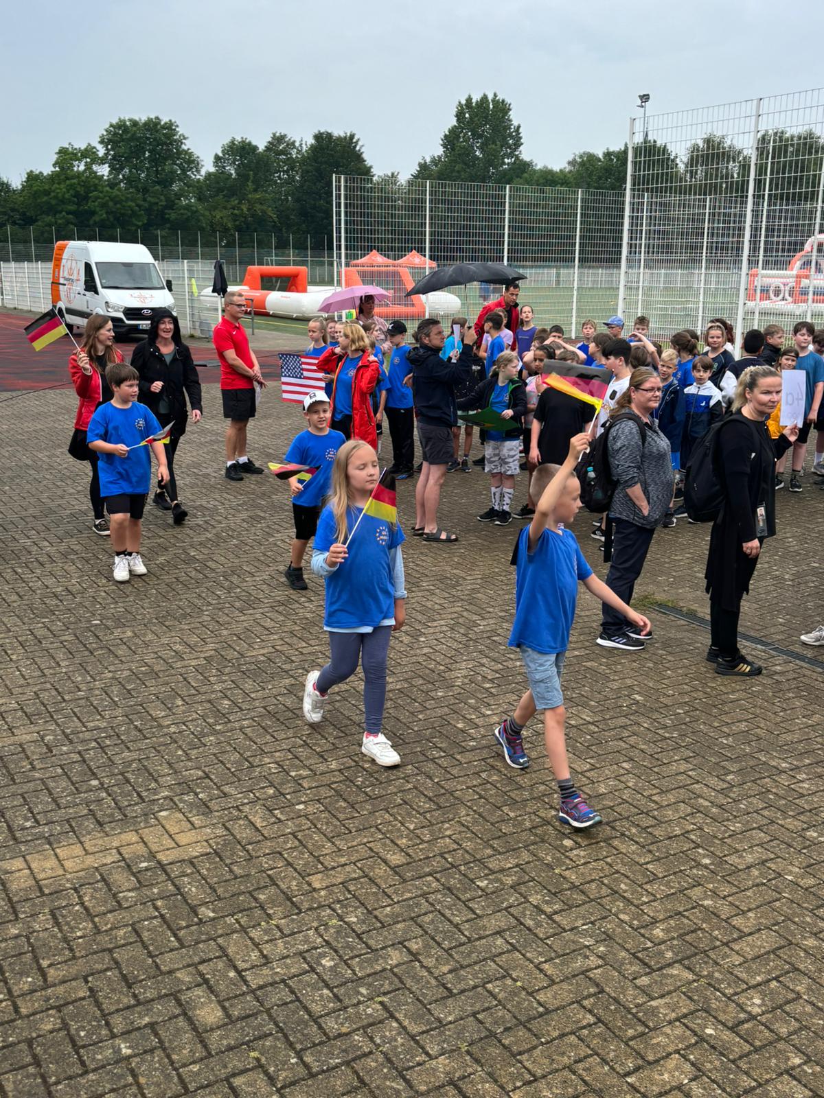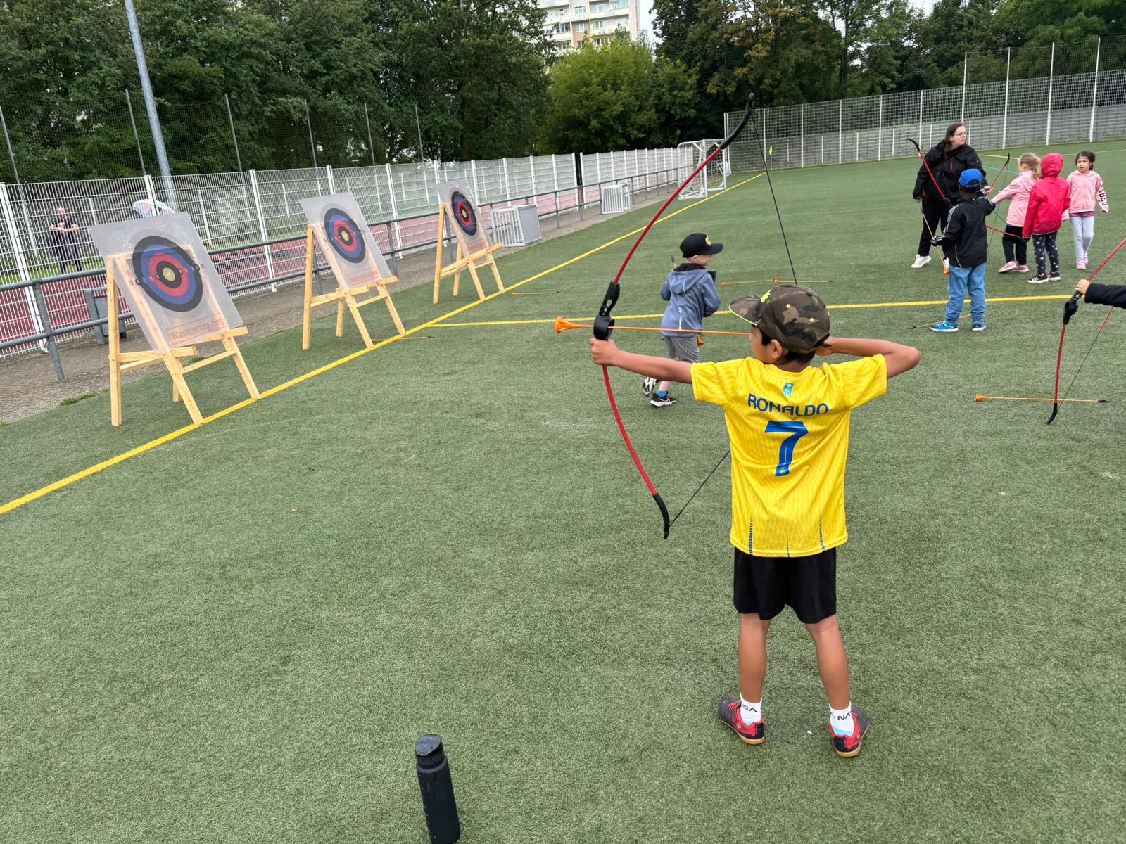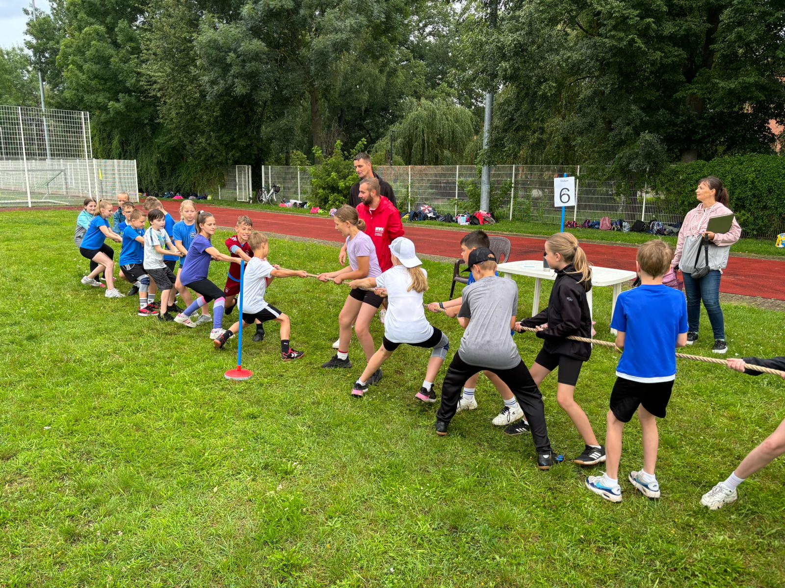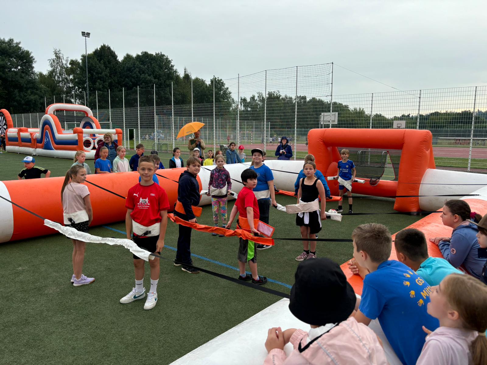 Die „Olympischen Sommerspiele“ wurden am 16.07.2024 mit dem „Olympischen Feuer“ eröffnet. Kleine Sportler aus 12 Ländern kämpften trotz Regen um beste Ergebnisse. Der Spaß stand dabei im Mittelpunkt. Unsere Gäste von Wandertag.net aus Berlin begeisterten die Teilnehmer mit verschiedenen Trendsportarten zum Ausprobieren: Bubble Soccer, Bogenschießen, Dart, Kicker-Football, Biathlon und eine lustige Hindernisbahn. Auch viele Eltern und Großeltern hatten tolle Ideen für weitere sportliche Stationen. Ein großes Dankeschön an alle Helfer!
